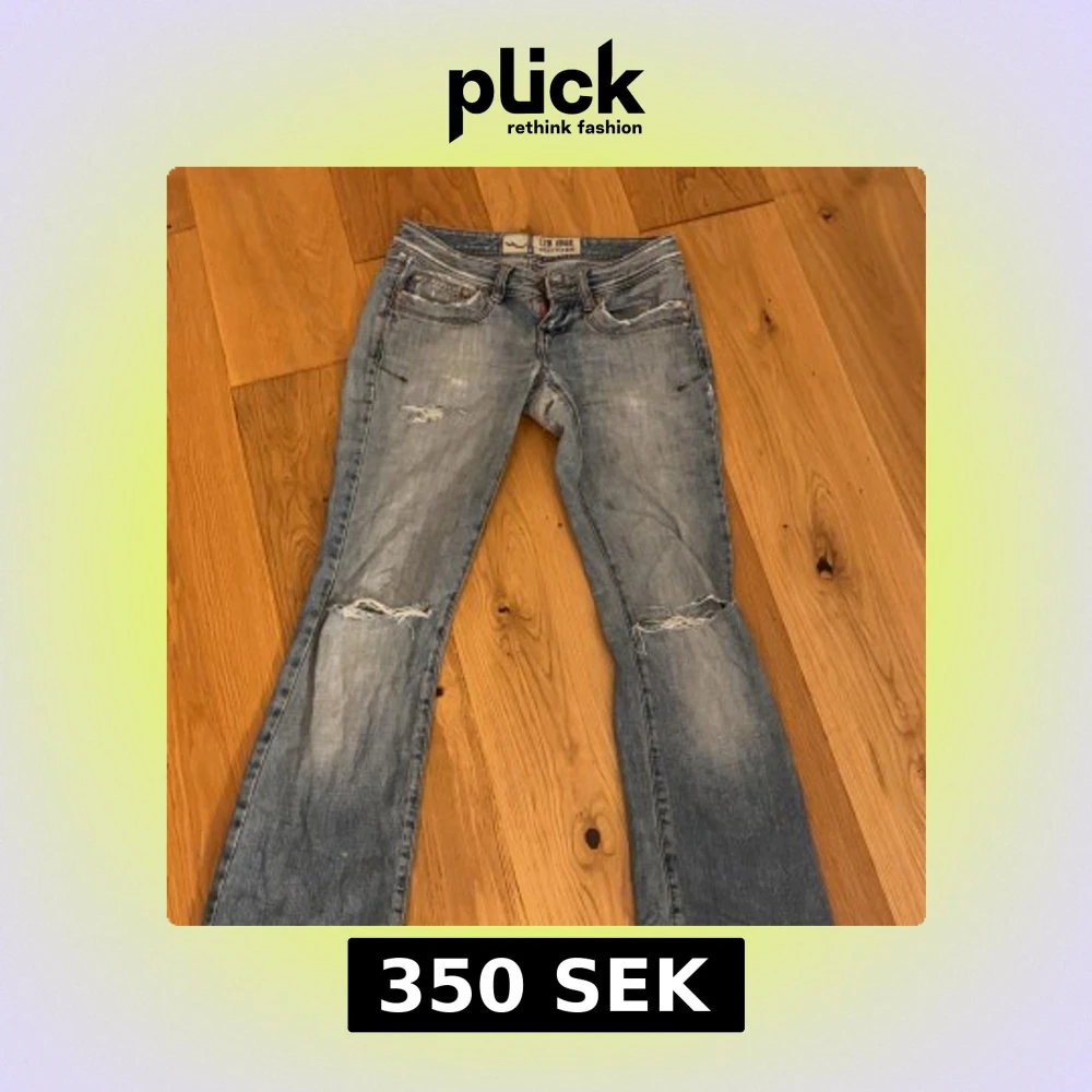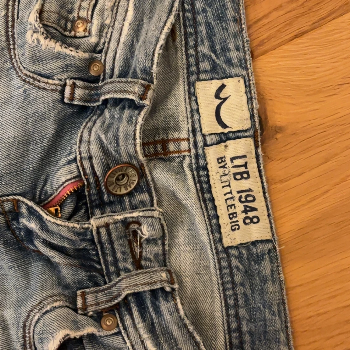 Säljer ett par ljusblå jeans från LTB 1948 med slitna detaljer. Jeansen har klassisk femficksdesign, snygga nitar och ett broderat märke baktill. Säljer för 350 eftersom att det inte finns användning för dom längre, Säljs inte i butik längre.