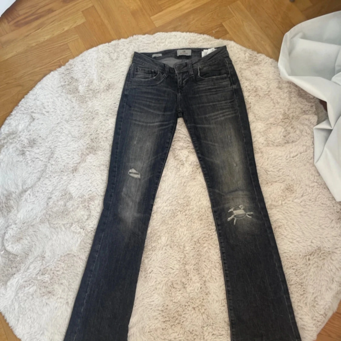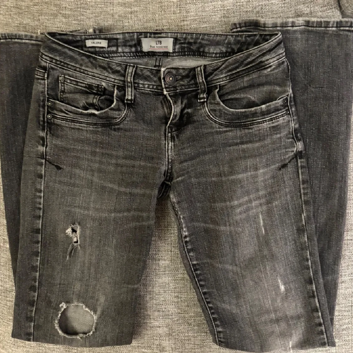 Snygga svarta bootcut jeans från LTB med slitningar och hål på knäna. Jeansen har låg midja, klassisk femficksdesign och en tvättad look med ljusare partier.💕💕