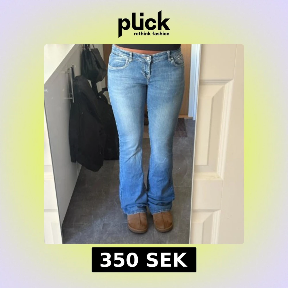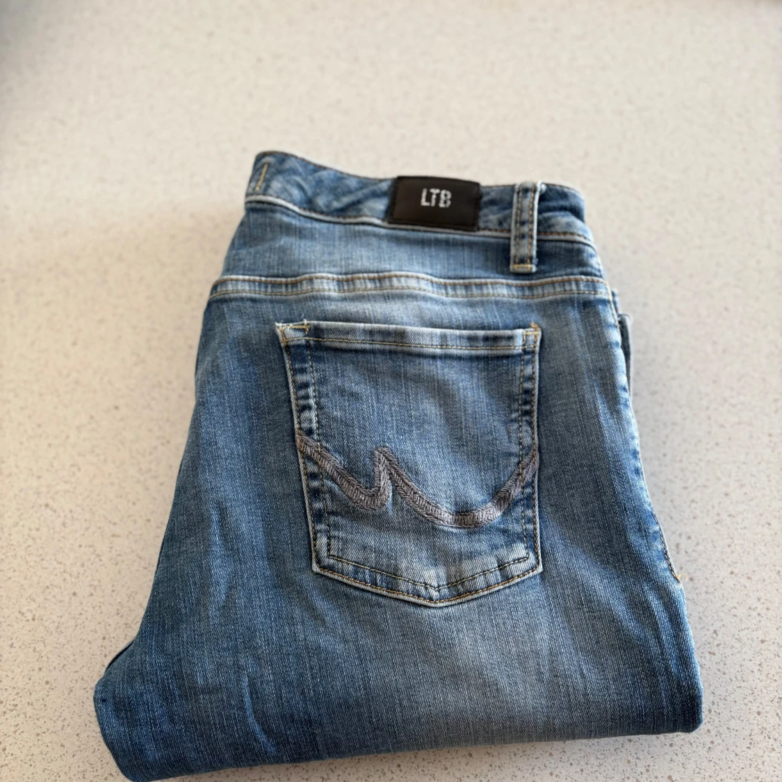 Ljusblå LTB jeans i storlek W29/L36. Jeansen är generellt i bra skick förutom nere vid fötterna där de blivit slitna pga att de är för långa för mig(174). Men det är inget som syns tydligt när de är på och går lätt att sy upp.