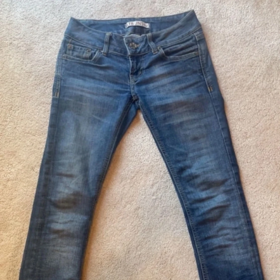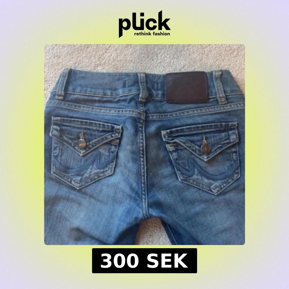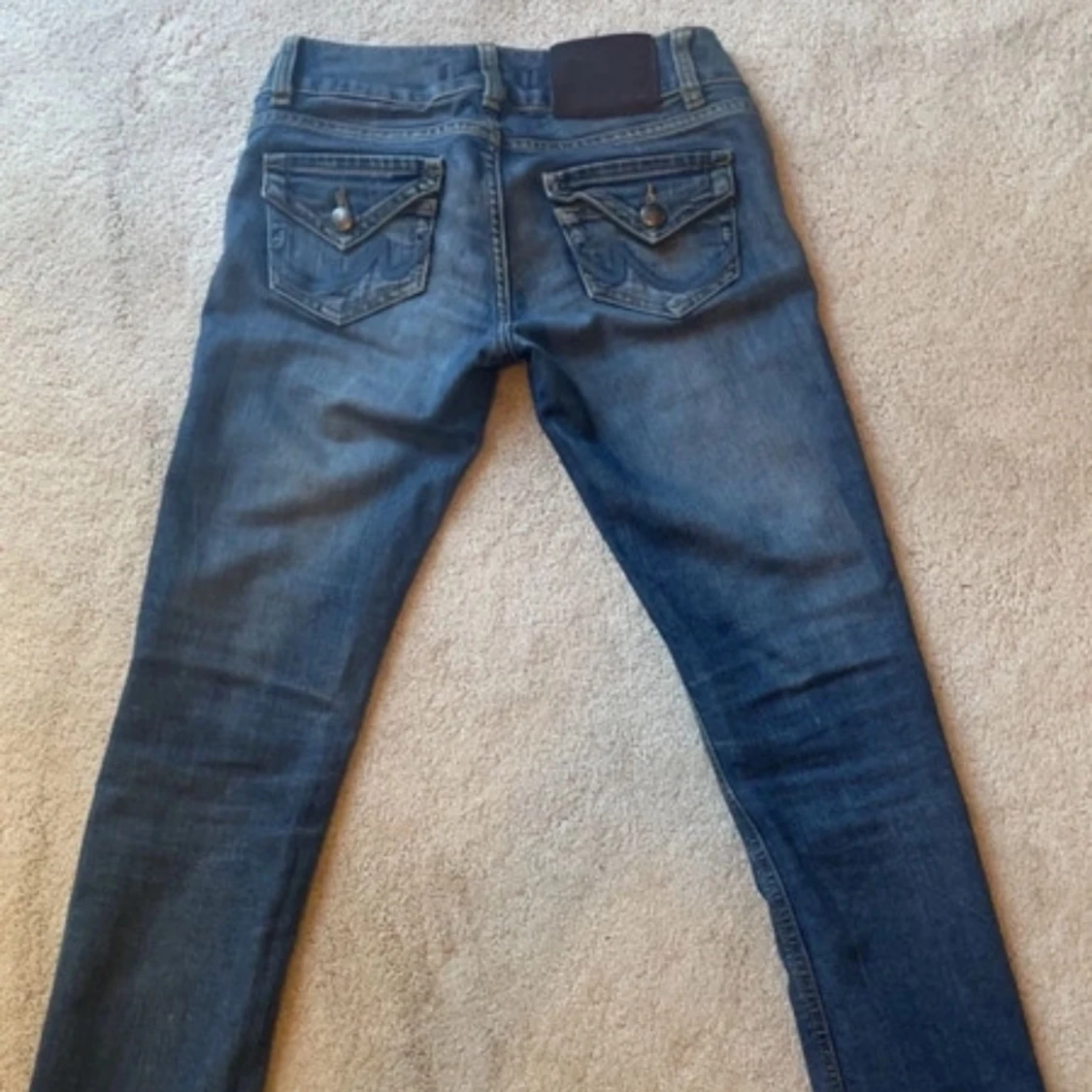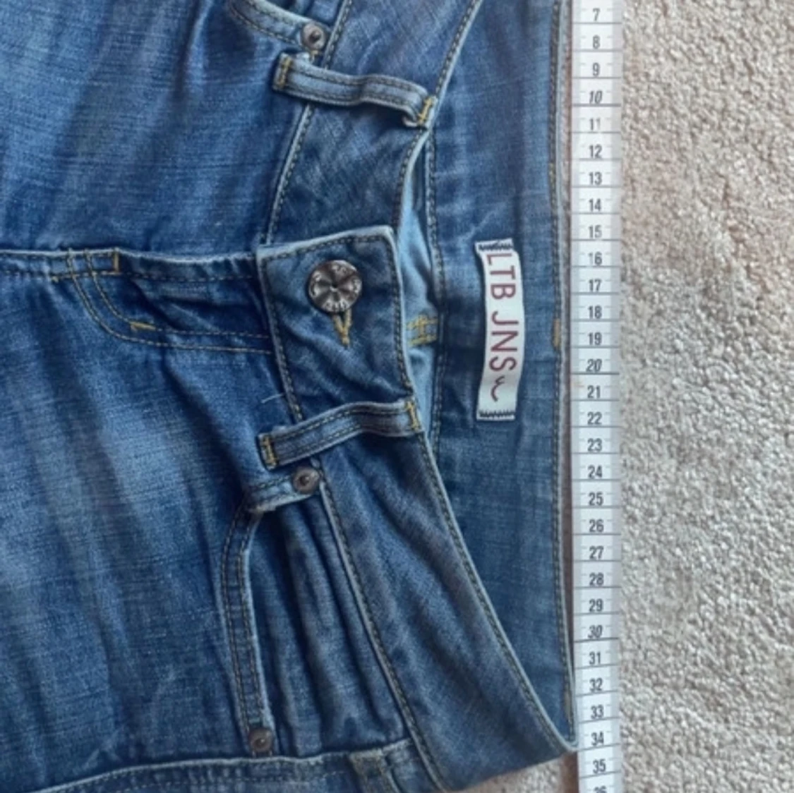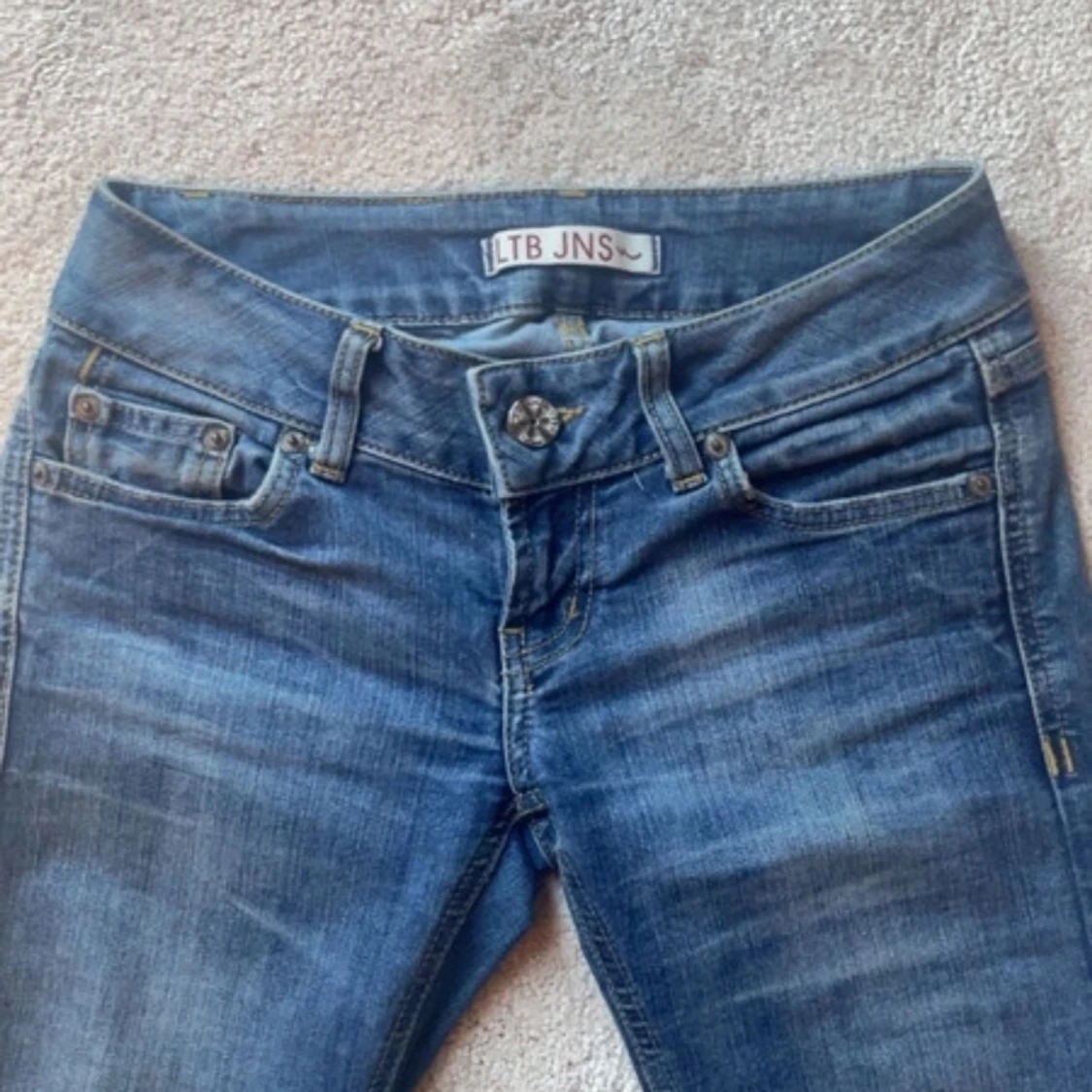 Snygga blå jeans från Ltb med låg midja. Jeansen har coola detaljer på bakfickorna med broderad våg och knappar, samt klassisk femficksdesign. Materialet är jeans med lätt tvättad look och slitningar för en trendig vibe. På dessa bilder får jag inte med hela byxorna, så skriv såklart till mig ifall du har några frågor eller funderingar!!💕Stolek på byxorna är W25 L30.