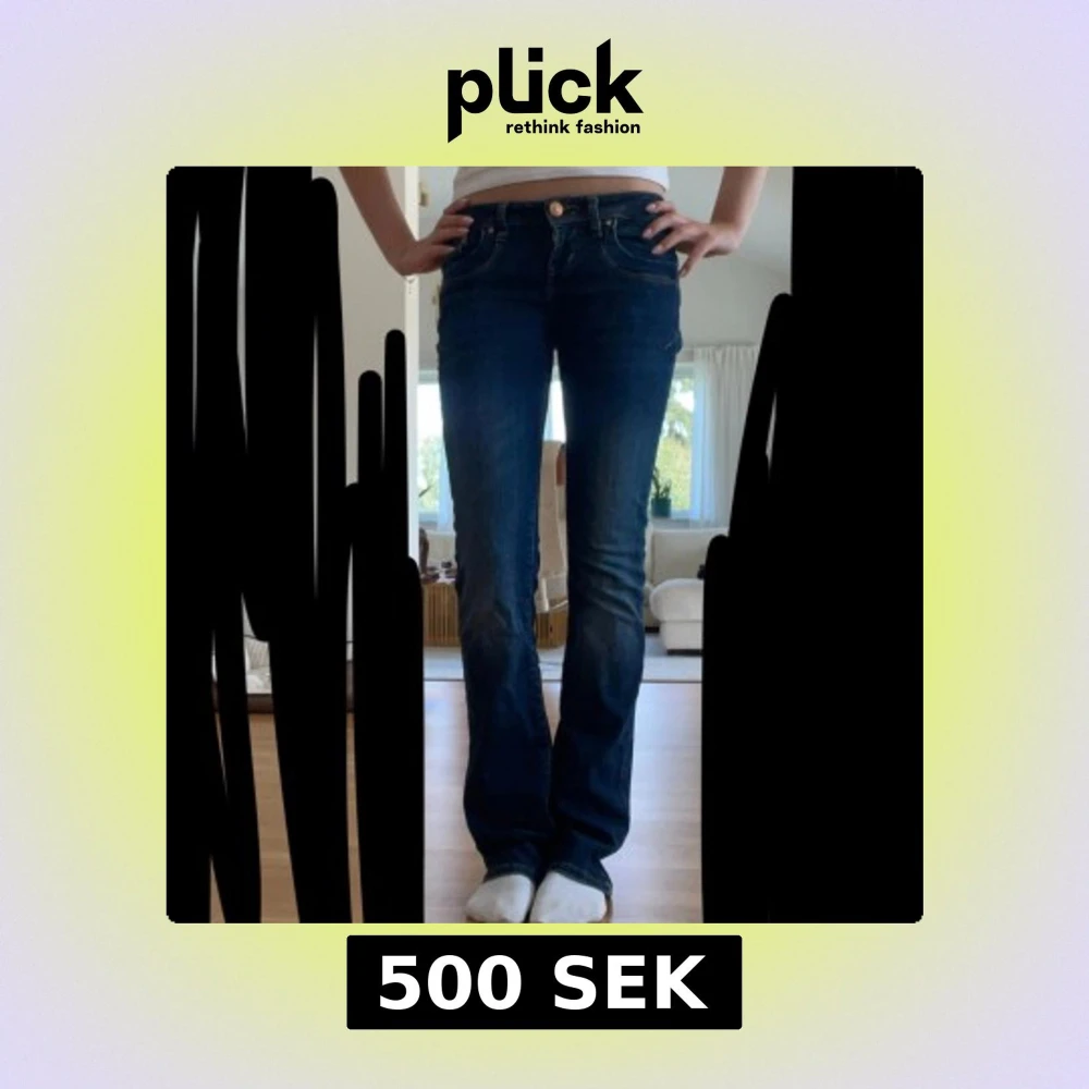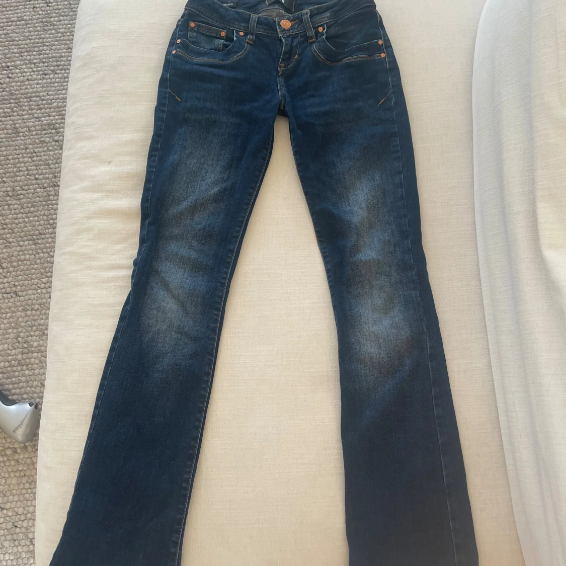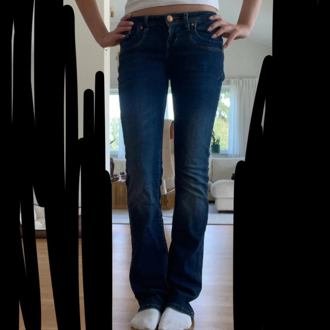 Säljer ett par mörkblå jeans från LTB, modell Valerie. Storlek 24/32. Supersnygga och perfekta nu till hösten!