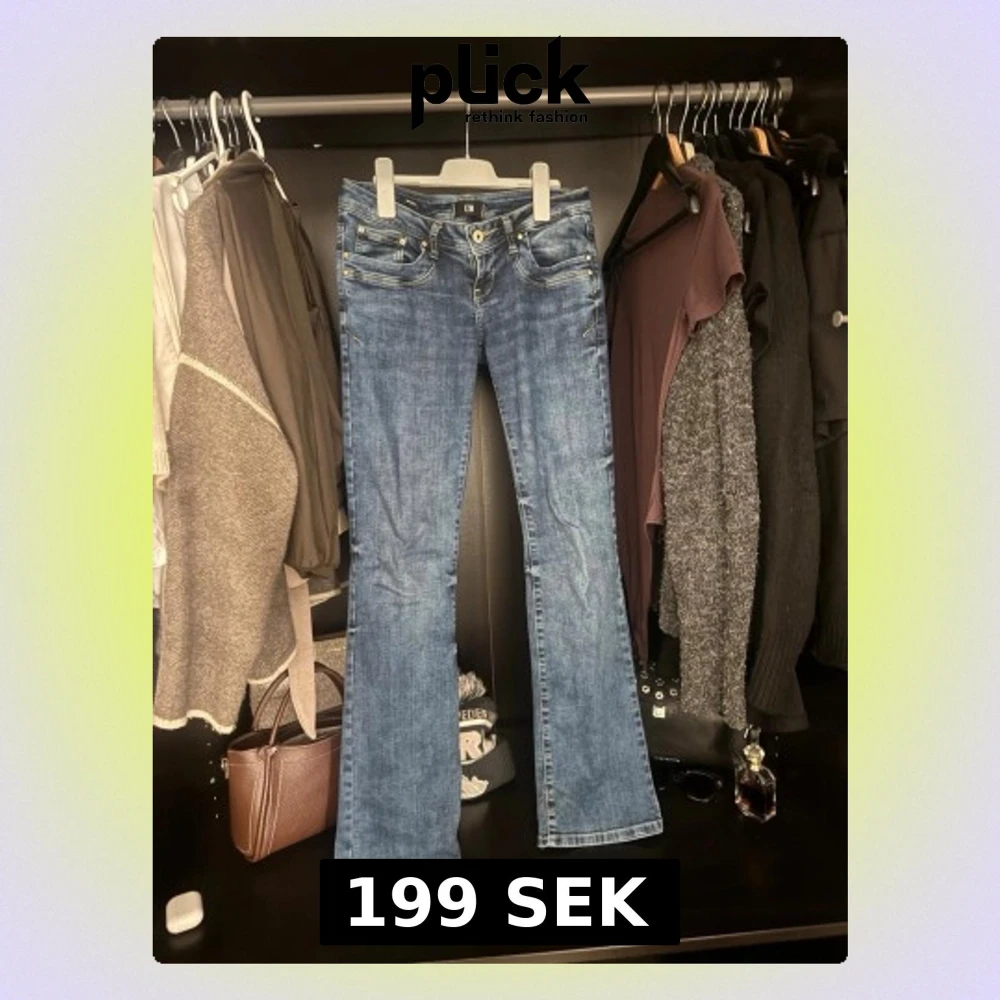 Säljer ett par blå bootcut jeans från LTB, modell Valerie. Jeansen har klassisk femficksdesign, normal passform och snygg tvättad look. Perfekta för dig som gillar en tidlös stil med lite utsvängda ben.