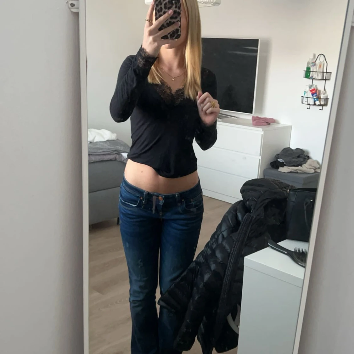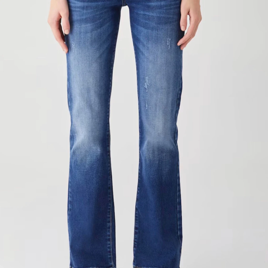 Säljer ett par blå bootcut jeans med låg midja från ltb, inga tecken på användning. Dom är avklippta nere vid benen så dom passar nån runt 163