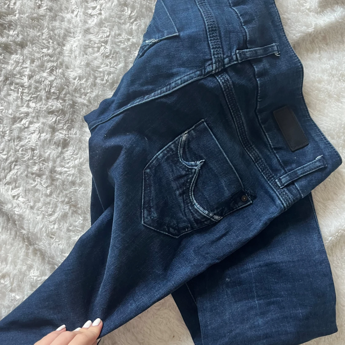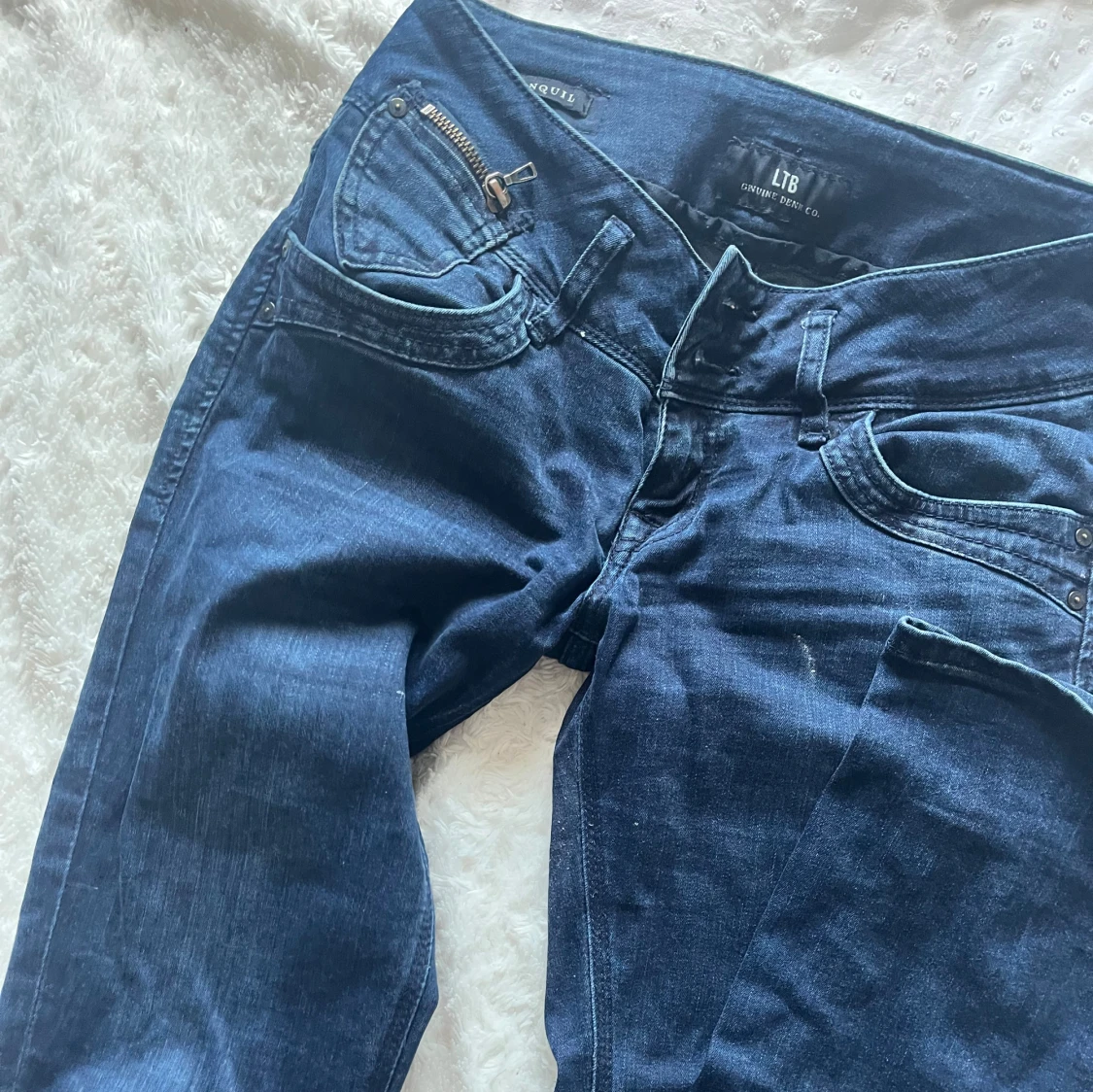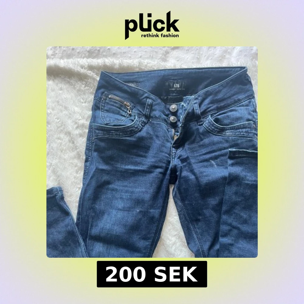 Snygga mörkblå jeans från LTB med cool dragkedjedetalj på fickan och dubbla knappar i midjan. W26 L32