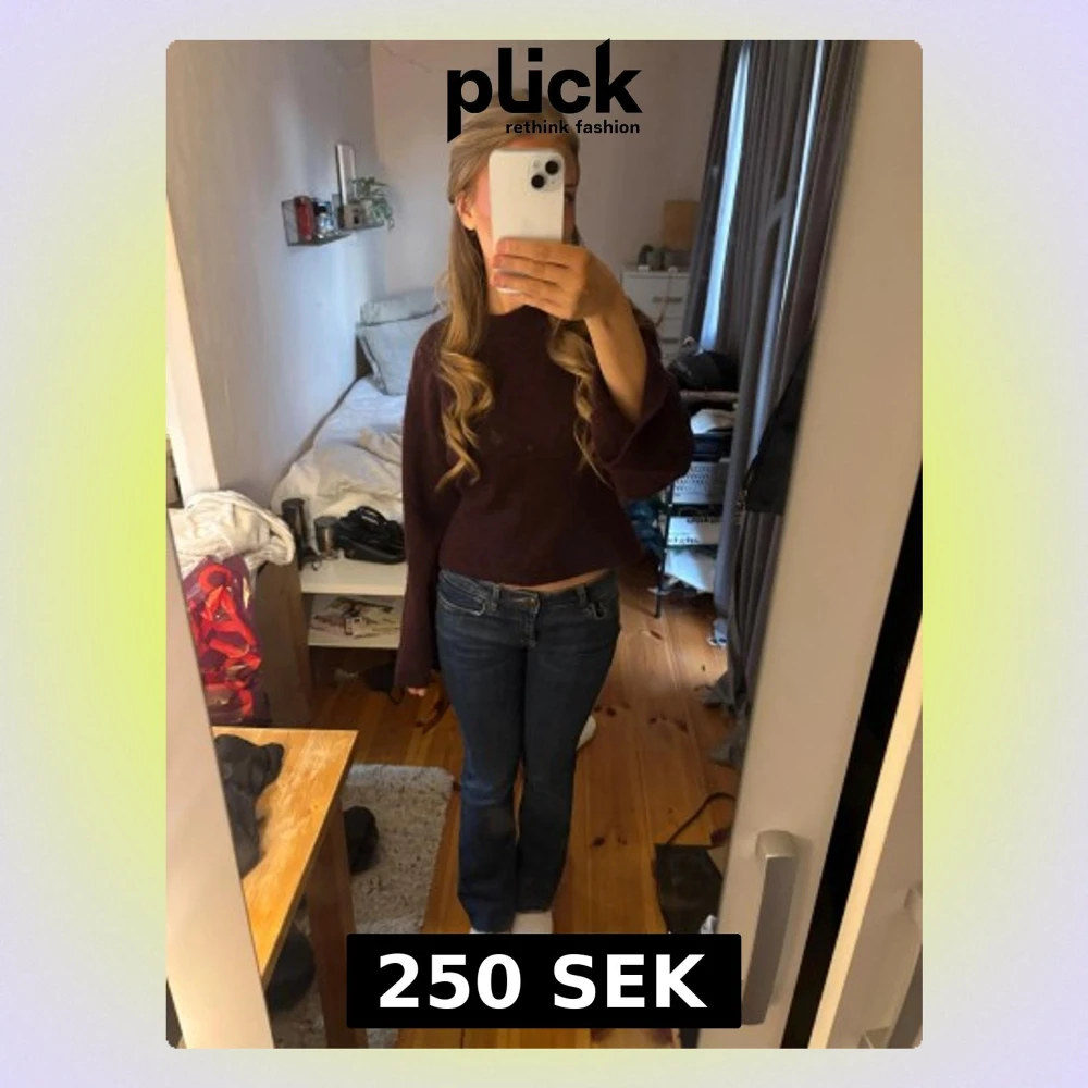 Säljer ett par snygga blå jeans med bootcut och låg midja. Jeansen har klassisk femficksdesign och är tillverkade i ett stretchigt denimtyg som sitter skönt. Passformen är normal och benen är lätt utsvängda nedtill för en cool siluett.