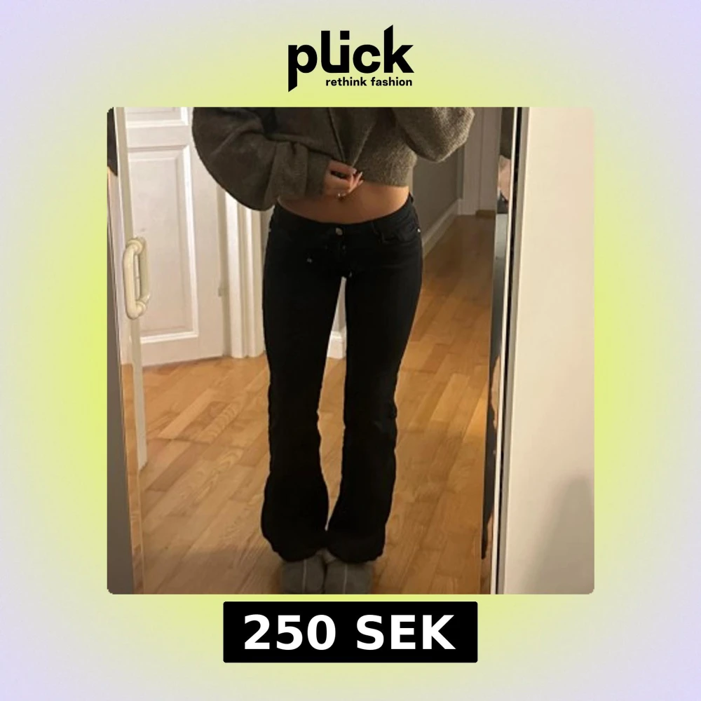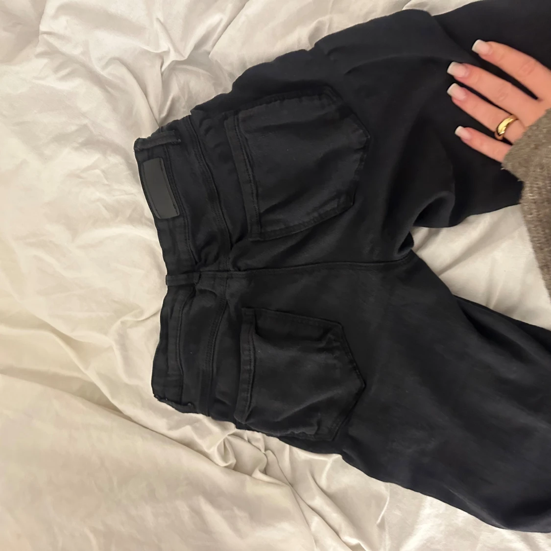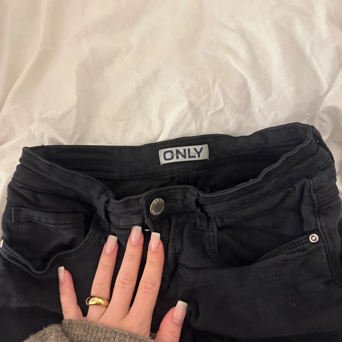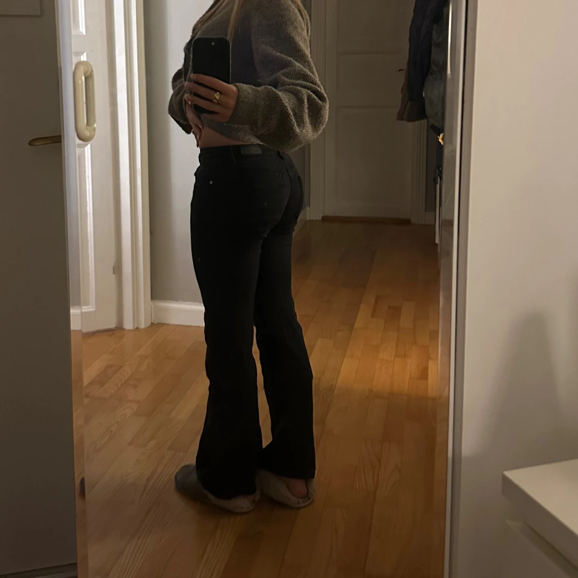 Säljer ett par svarta jeans från ONLY med bootcut passform och låg midja. Känns inte som att jag har jeans på mig, super mjuka och sköna🥰🥰