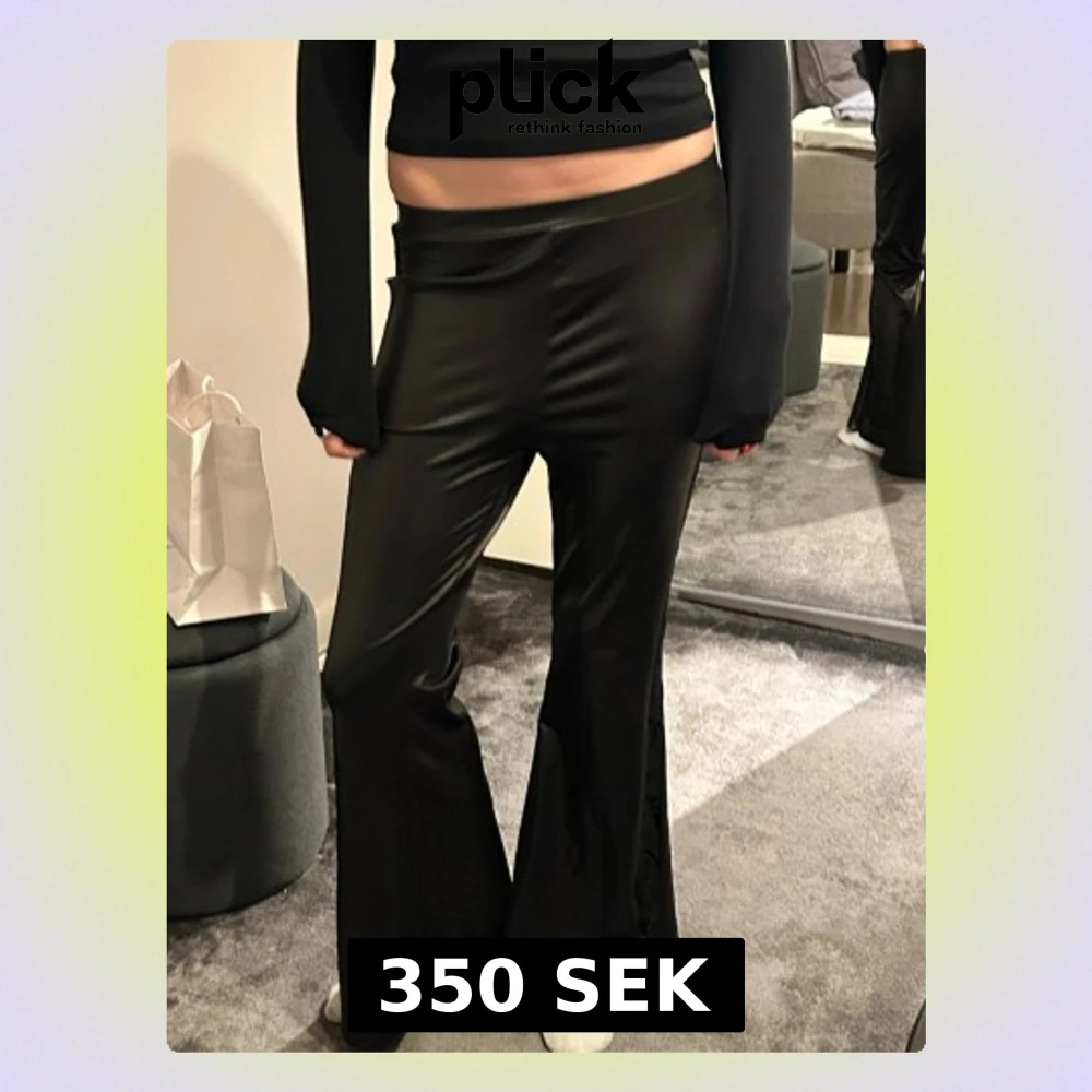 utsvängda skinnbyxor med spetskant på sidan. jag är 175 cm lång som referens! hör av er vid frågor!! bästa festbyxan 👏🏼