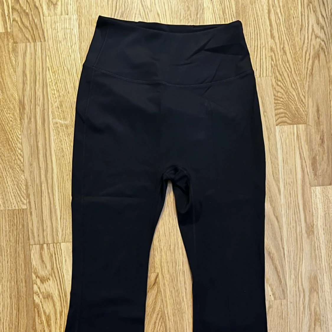 Svarta flare leggings i storlek 4, har endast använts 2 gånger som nya! Hög midja och stretchiga! Passar mig 165cm perfekt