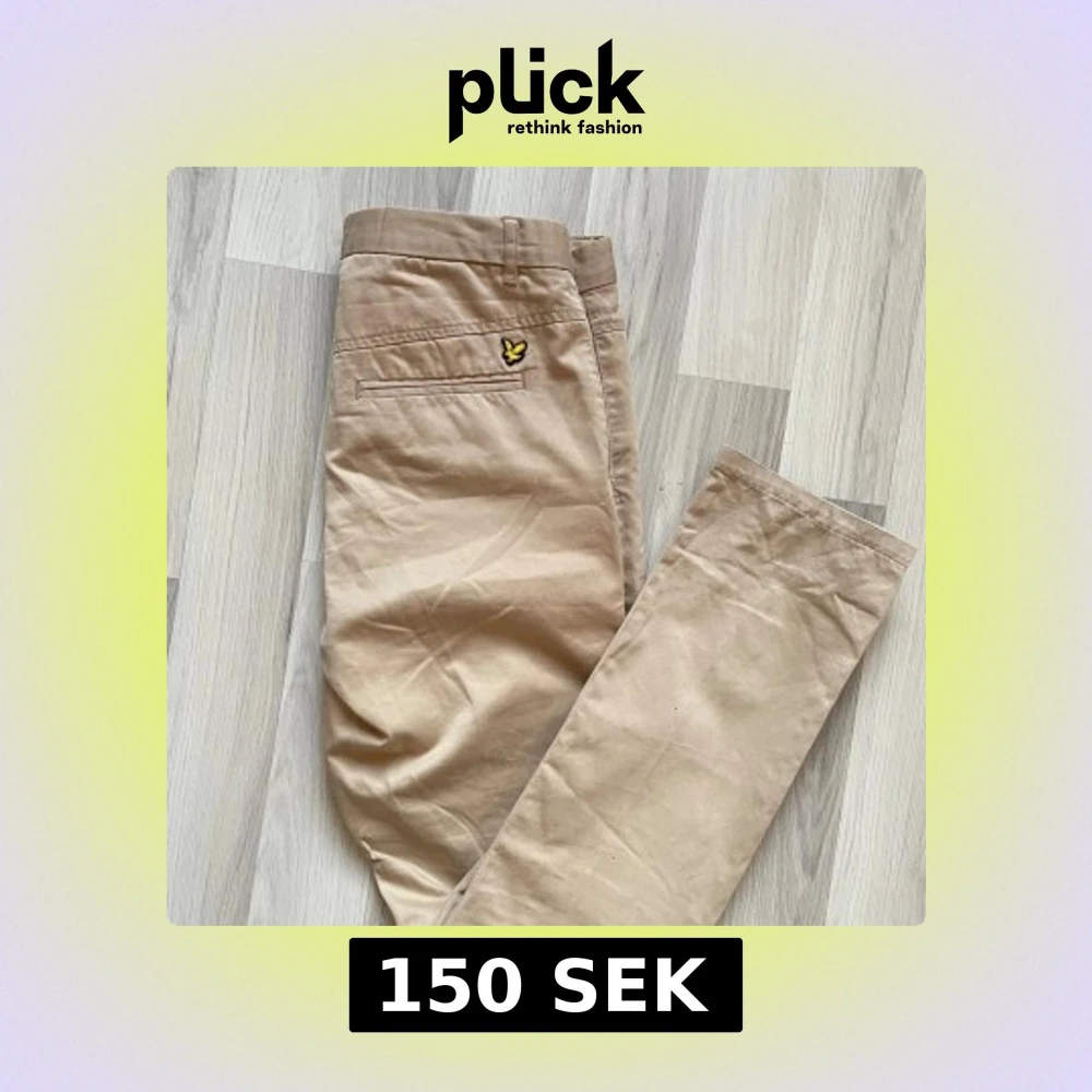 Snygga beige chinos från Lyle & Scott med klassisk rak passform och broderad gul fågel på bakfickan. Byxorna har bälteshällor, sidofickor och är gjorda i mjuk bomull som är skön att ha på sig. Perfekt för dig som gillar stilrena och enkla plagg.