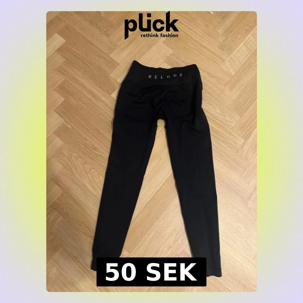 Svarta leggings från Relode med hög midja och tight passform. Perfekta för träning eller chill, med diskret logga på linningen. Mjukt och stretchigt material som sitter skönt hela dagen.