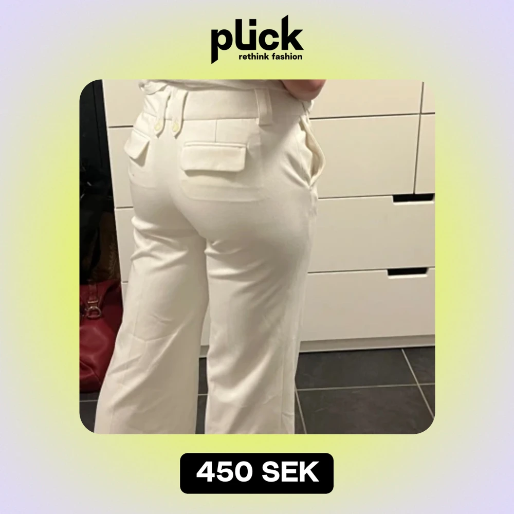 Vita kostymbyxor med snygga detaljer, svänger ut lite nertill