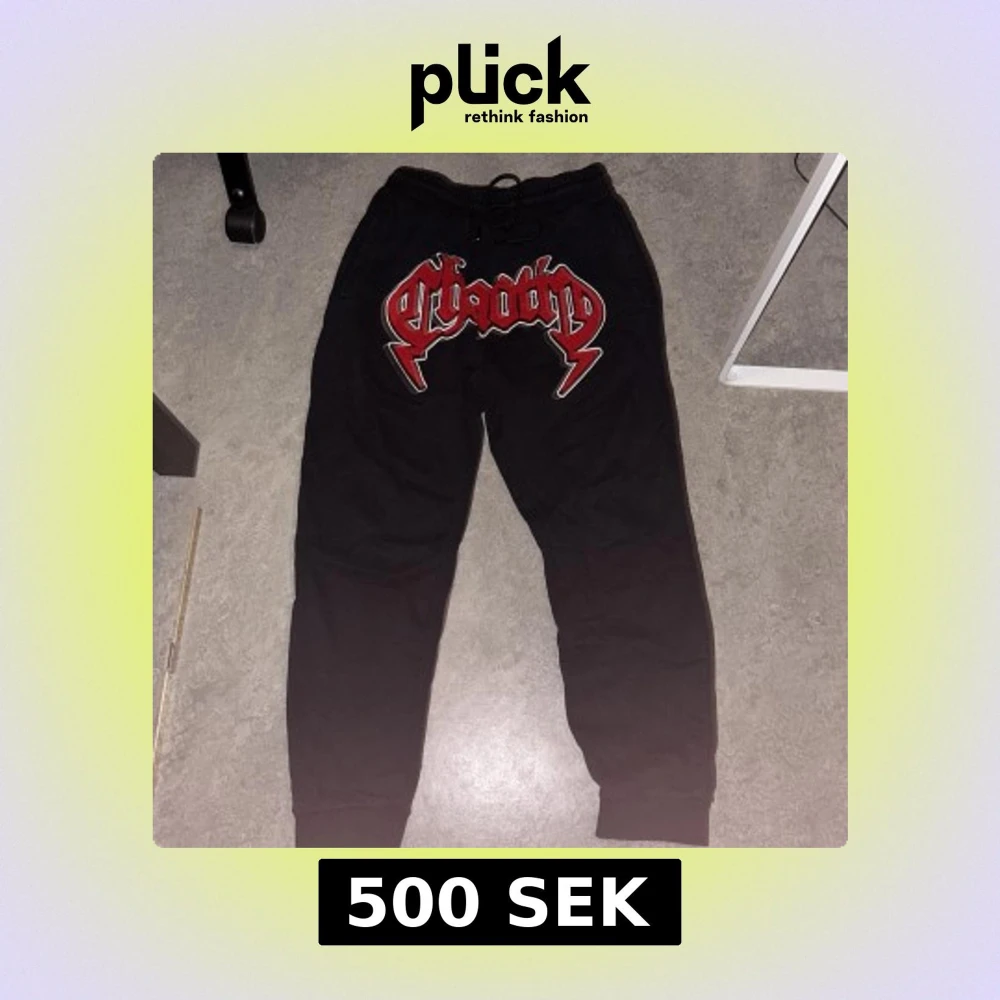 En meckenzie tröja ett par hellokitty ett par palm angels ett par fsbn byxor ett par pjamas byxor och en meckenzie hoddie