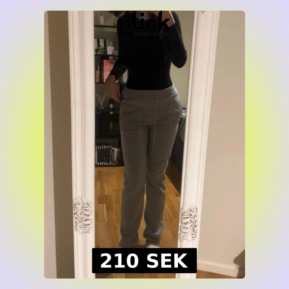 Säljer ett par grå mjukisbyxor med raka ben och elastisk midja med snörning. Byxorna har sidofickor och är gjorda i mjukt bomullsmaterial som är skönt mot huden. Perfekta för chill dagar hemma eller när du vill vara extra bekväm.