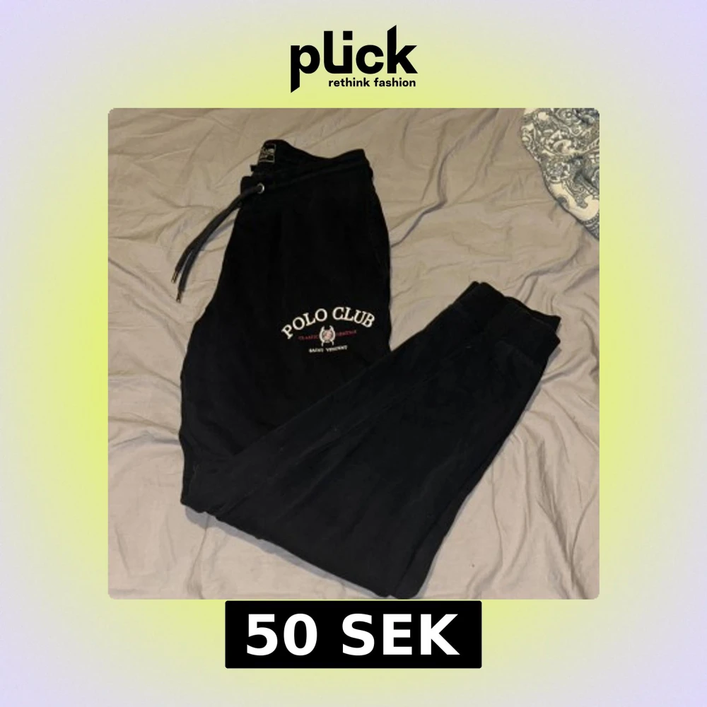 Svarta mjukisbyxor från Polo Club med logga och text på vänster lår. Byxorna har dragsko i midjan, resår vid benslut och en bakficka. Perfekta för chill eller träning, riktigt sköna och stilrena.