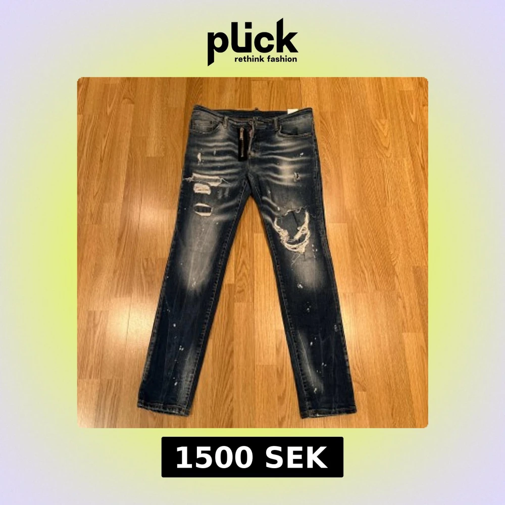 Snygga mörkblå jeans från Dsquared2 med coola slitningar. De har en dragkedja och knappar framtill. Köpta på NK i Göteborg för några år sedan
