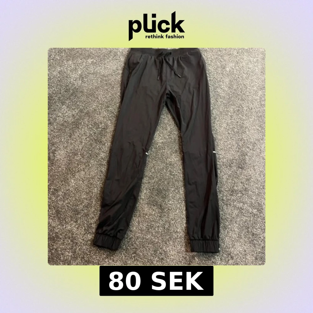 Svarta träningsbyxor från Famme i storlek M. Byxorna har elastisk midja med snörning, smal passform och reflexdetaljer runt knäna. Tillverkade i lätt syntetmaterial som andas, perfekta för löpning eller gym. Muddar vid benslut för extra komfort. Aldrig använts❤️