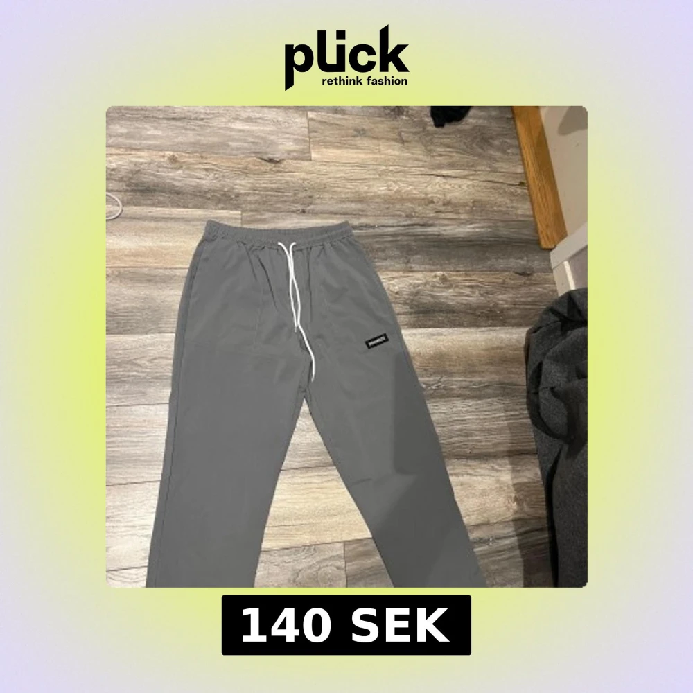 Snygga grå mjukisbyxor med elastisk midja och vit snörning. Perfekta för en avslappnad stil. Byxorna har en rak passform och en diskret logga på sidan.