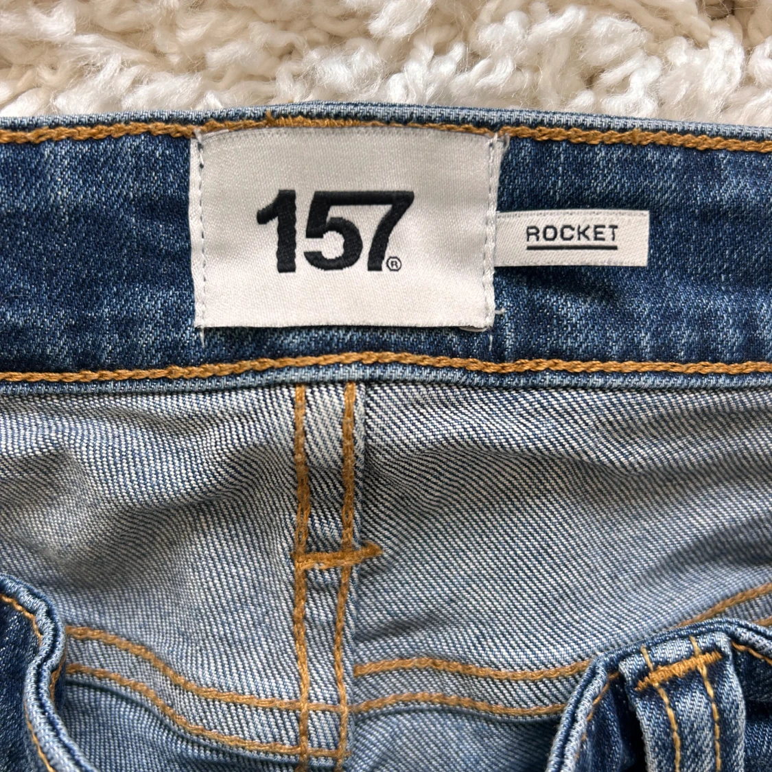 Snygga blå jeans från Laget 157 i modellen Rocket. De har en klassisk design med fem fickor och en bekväm passform. Perfekta för en avslappnad stil.
