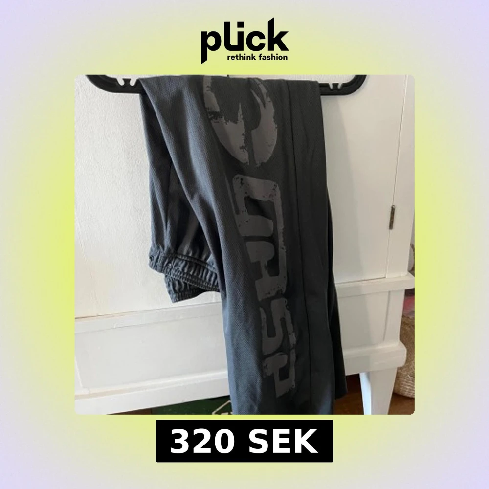 Nästan aldrig använda, har dragit ur snörena i midjan dock- (de sitter åt ändå). Lite korta på mig som är 172, byxorna är strl M regular.