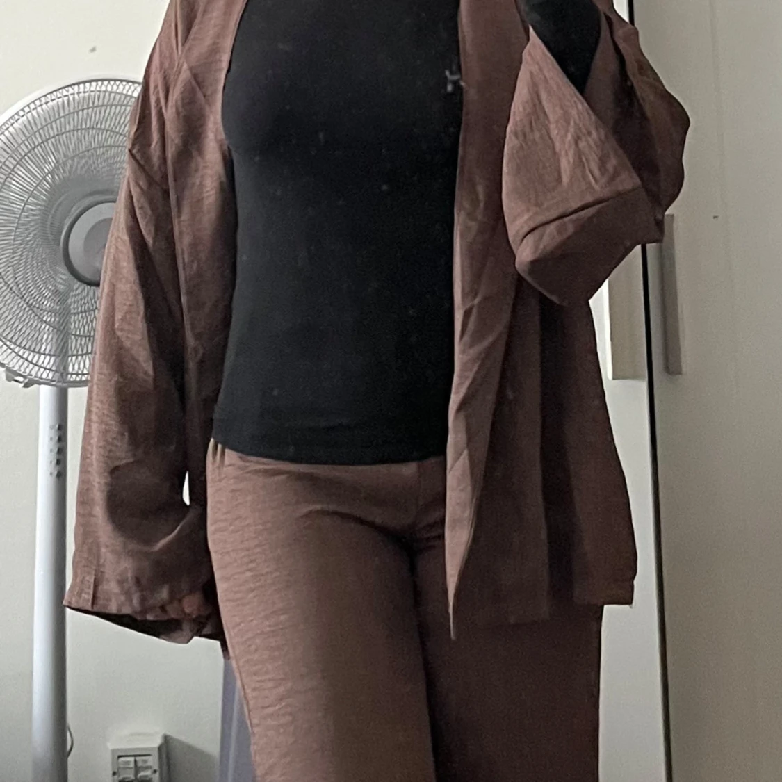 Snygga bruna linnebyxor med rak passform och avslappnad stil. Byxorna har en mjuk och luftig känsla, perfekta för dig som gillar en chill och stilren look. Passar grymt till både t-shirt och skjorta. Färgen är varm brun och materialet är linne. Bruna tröja medföljer då de är ett set !
