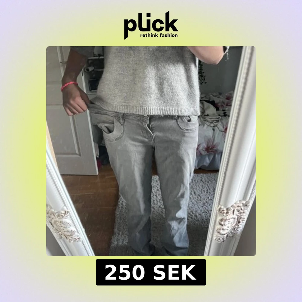 Snygga grå jeans från LTB med låg midja och bootcut-ben. Klassisk femficksmodell med silverfärgade nitar och knapp. säljer för de tyvörr för stora för mej som bär S