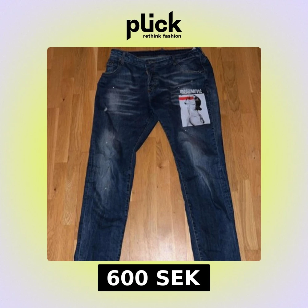 Snygga blå jeans från Dsquared2 med ett unikt tryck på framsidan. Jeansen har en klassisk femficksdesign och slitna detaljer för en cool look. Perfekta för dig som vill sticka ut med stil.