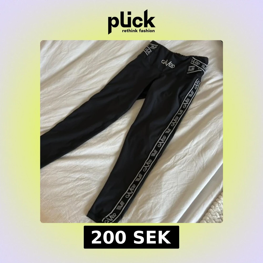 Snygga svarta leggings från Gavelo med logotyp längs sidorna och i midjan. Perfekta för träning eller en avslappnad dag. Storlek M.