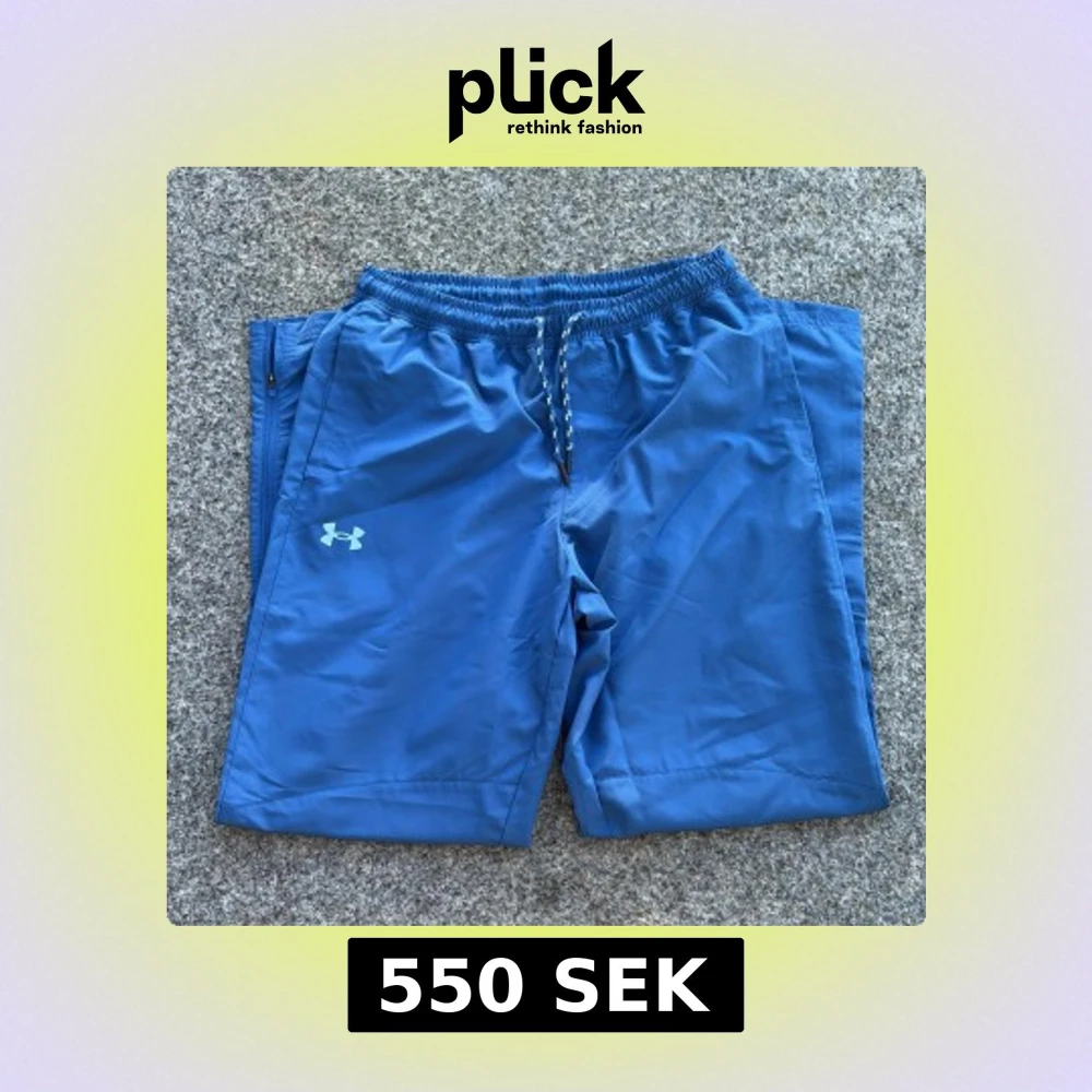 Snygga blå träningsbyxor från Under Armour med elastisk midja och snörning. Byxorna har dragkedjeförsedda fickor på sidorna och är tillverkade i ett lätt och snabbtorkande syntetmaterial. Perfekta för gymmet eller löprundan.