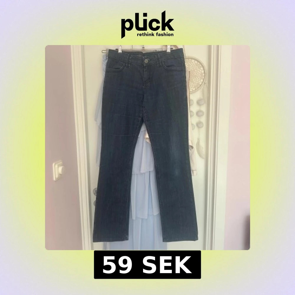 Snygga mörkblå jeans med bootcut passform och klassiska fickor. Jeansen har en rak midja och är tillverkade i ett robust denimtyg.