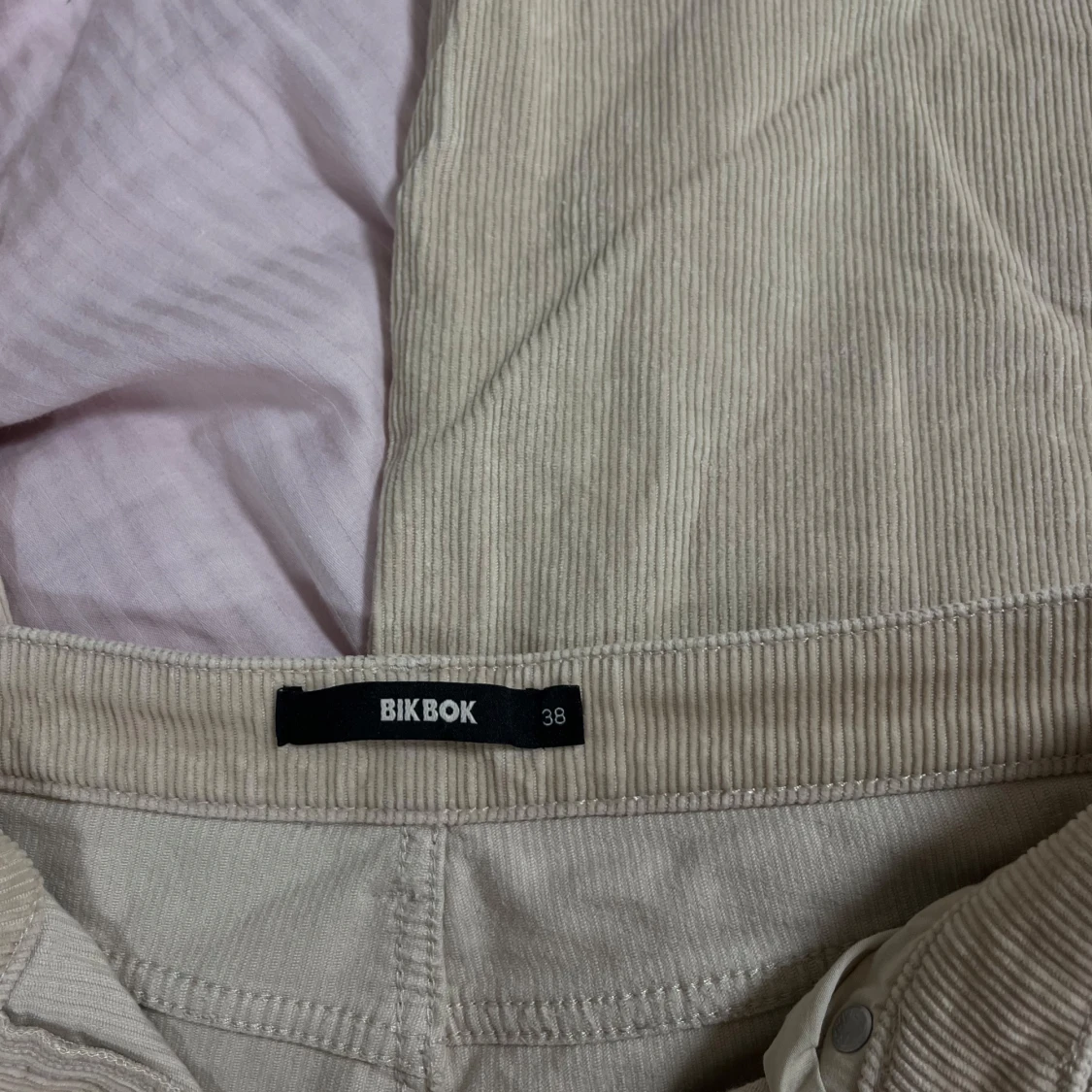 Beigea manchesterjeans från BikBok med vida/raka ben i strl M. Superfina och nästintill oanvända, säljes då jag tycker de är lite korta på mig som är 178💓