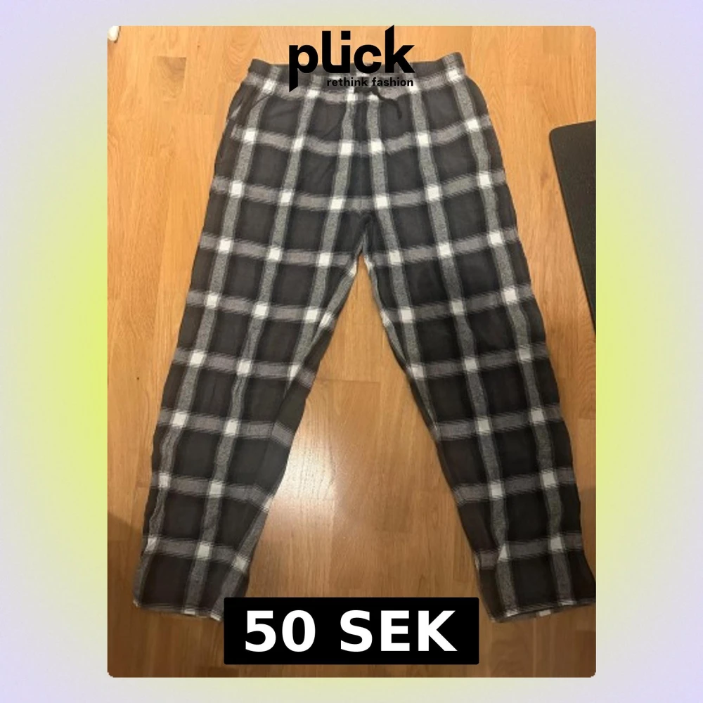 Säljer ett par pyjamasbyxor från New Look i storlek M. Byxorna har ett rutigt mönster i vitt och grått. Obs: Alla plagg säljs endast fram till 28/12