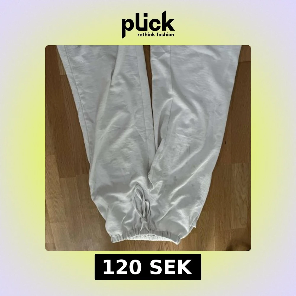 Säljer ett par vita linnesbyxor med snörning i midjan. Byxorna har en loose passform och är perfekta för en avslappnad stil. Tillverkade i mjukt material för extra komfort.