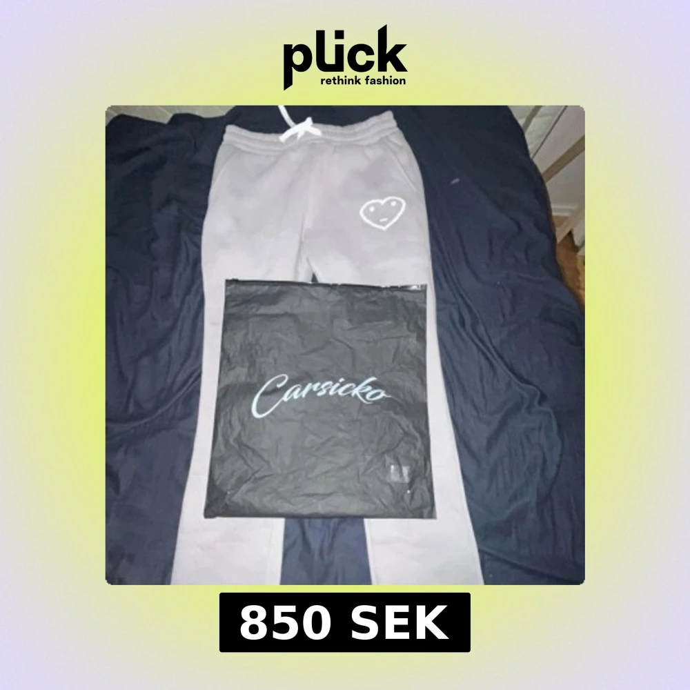 Säljer ett par grå mjukisbyxor från Carsicko. Byxorna har en bekväm passform med dragsko i midjan för justerbarhet.