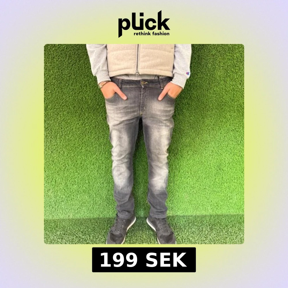 Snygga grå jeans med en lätt tvättad look. De har en klassisk femficksdesign och knappgylf. Perfekta för en avslappnad stil.