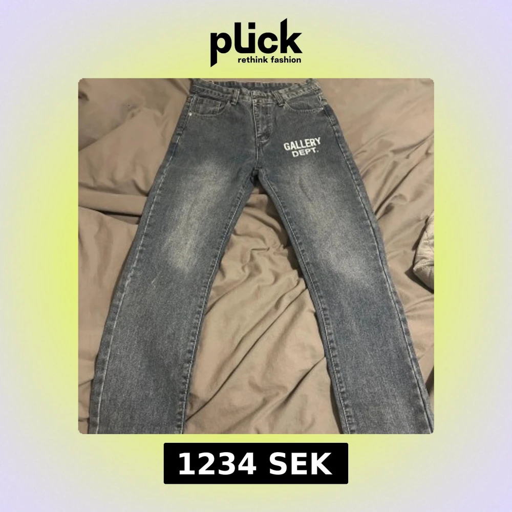 Snygga jeansbyxor från Gallery Dept. i en klassisk blå färg. Byxorna har en Denim passform och är dekorerade med vit text på både fram- och baksidan. Kom med prisförslag