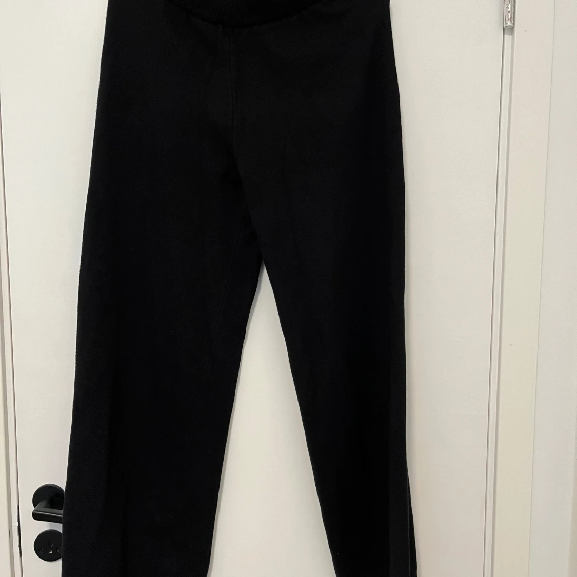Svarta mjukisbyxor från SHEIN i storlek M. Byxorna har en ribbad, elastisk midja och är tillverkade i ett mjukt material som känns skönt mot huden. Perfekta för en avslappnad och chill stil.