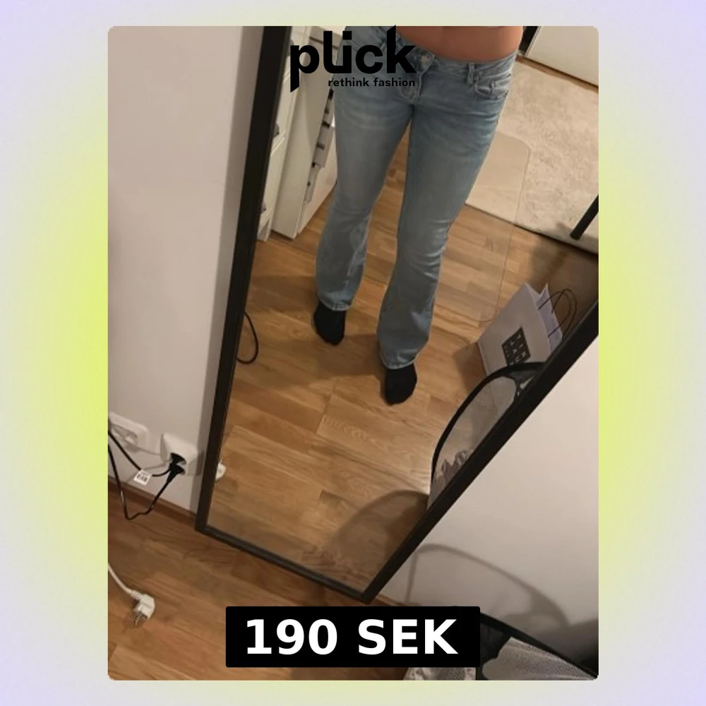 Säljer ett par ljusblå jeans från MSART med klassisk femficksdesign och bootcut-ben. Jeansen har en snygg tvättad look och är även väldigt stretchiga.