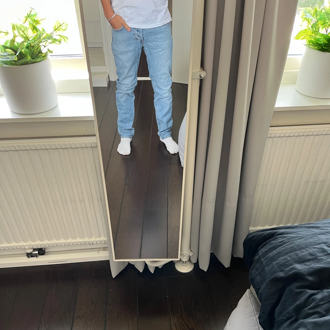 Säljer ett par klassiska ljusblå NEUW jeans med rak passform. Jeansen har fem fickor, knappgylf och är tillverkade i slitstarkt bomullsjeans. Perfekta för dig som gillar en tidlös och avslappnad look.