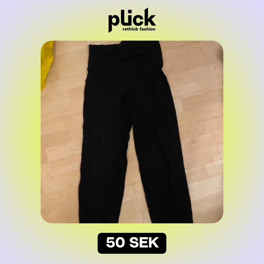 Säljer ett par svarta mjukisbyxor. De är högmidjade och verkar vara i ett mjukt material, kanske bomull eller polyester. Perfekta för en avslappnad stil eller vardagsbruk. Passar bra till både t-shirt och tröja.