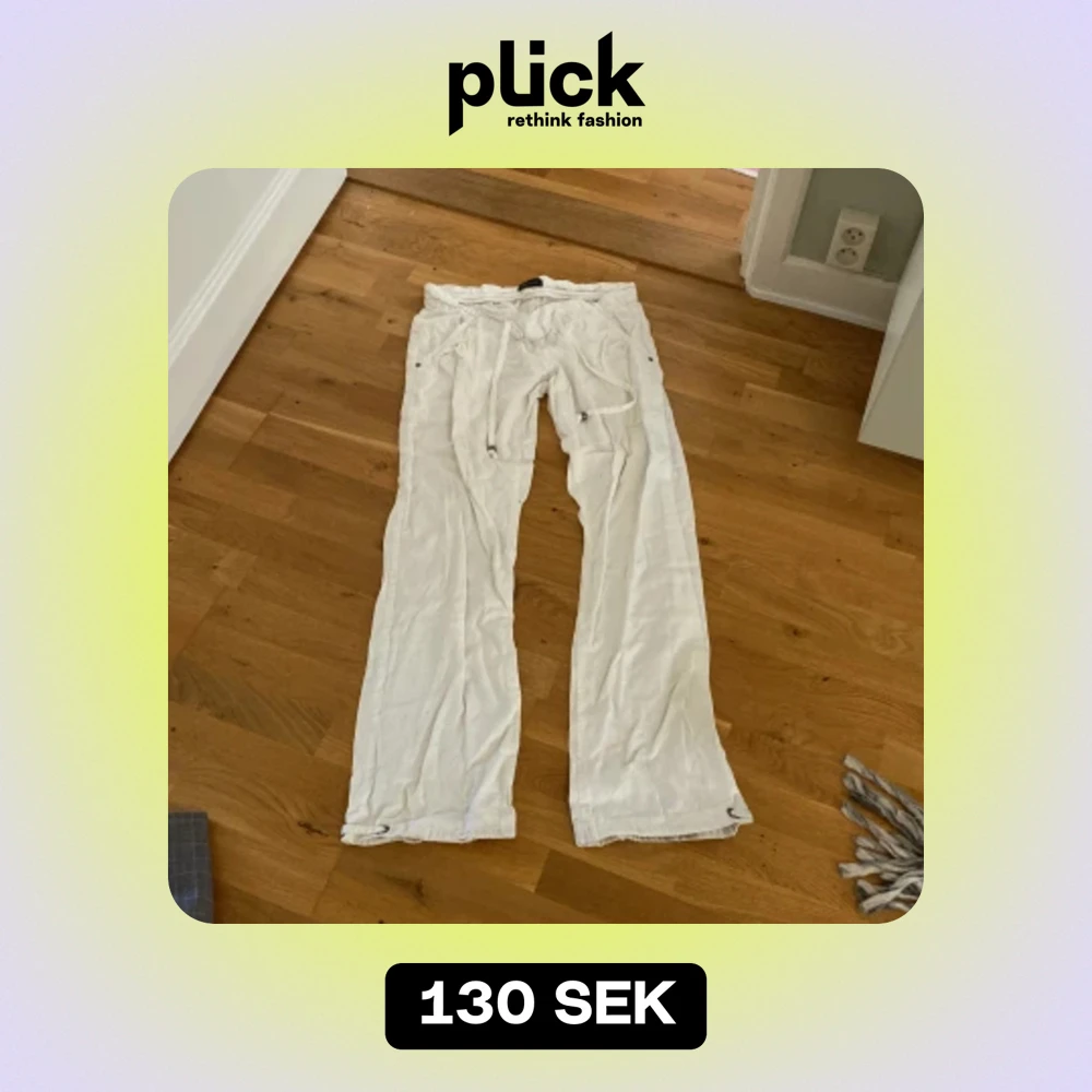 Linnebyxor jag påriktigt levde i hela sommaren 2022 men har skaffat mig ett par andra linnebyxor som sitter mer tajt och som jag har bytt ut dessa mot. (Extremt lågmidjade!)