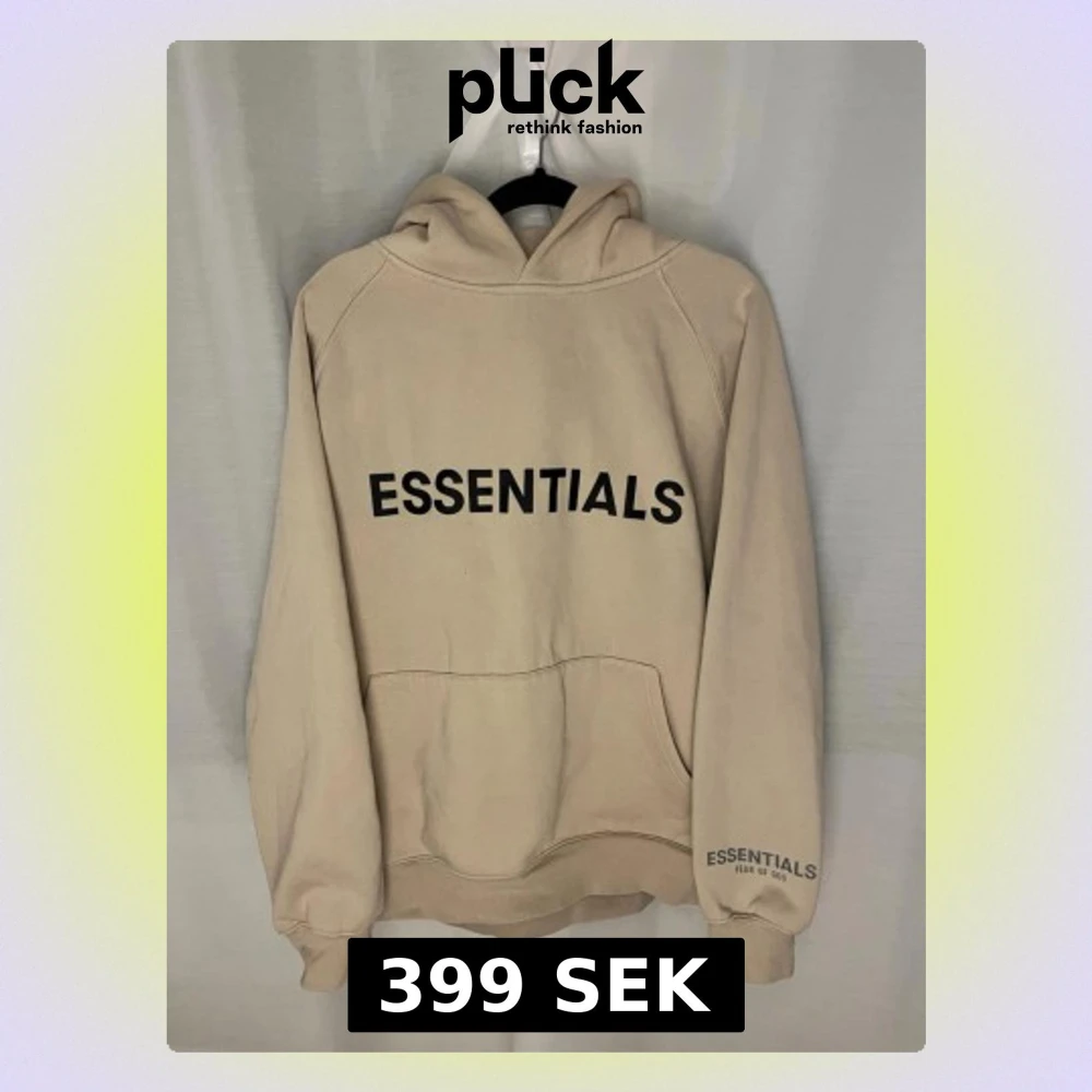 Säljer ett par beige mjukisbyxor från Essentials Fear of God i storlek M. Byxorna har elastisk midja med snörning, muddar vid benslut och sidofickor. Materialet är mjukt och skönt, perfekt för chill dagar. Logga tryckt på benet.