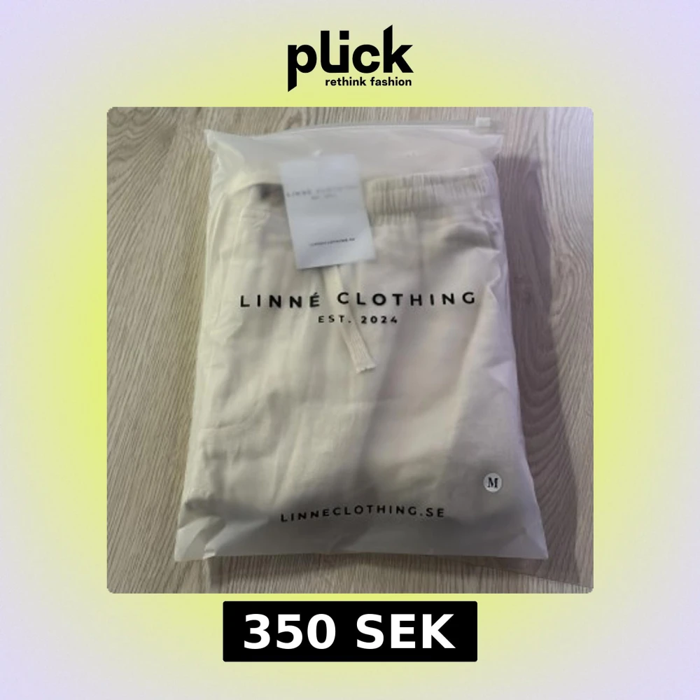 Oöppnade beige linnebyxor från Linne Clothing. Storlek M