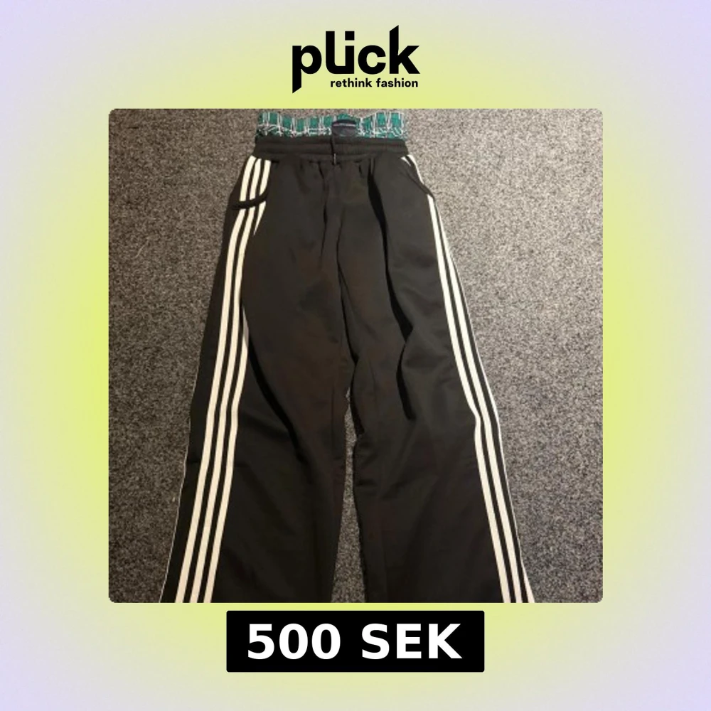 Svarta mjukisbyxor med vita ränder längs benen från Concrete Mansions. Byxorna har elastisk midja med grönt och vitt rutmönster, snörning och sidofickor. Skön loose passform och sportig vibe, perfekta för chill eller streetwear.