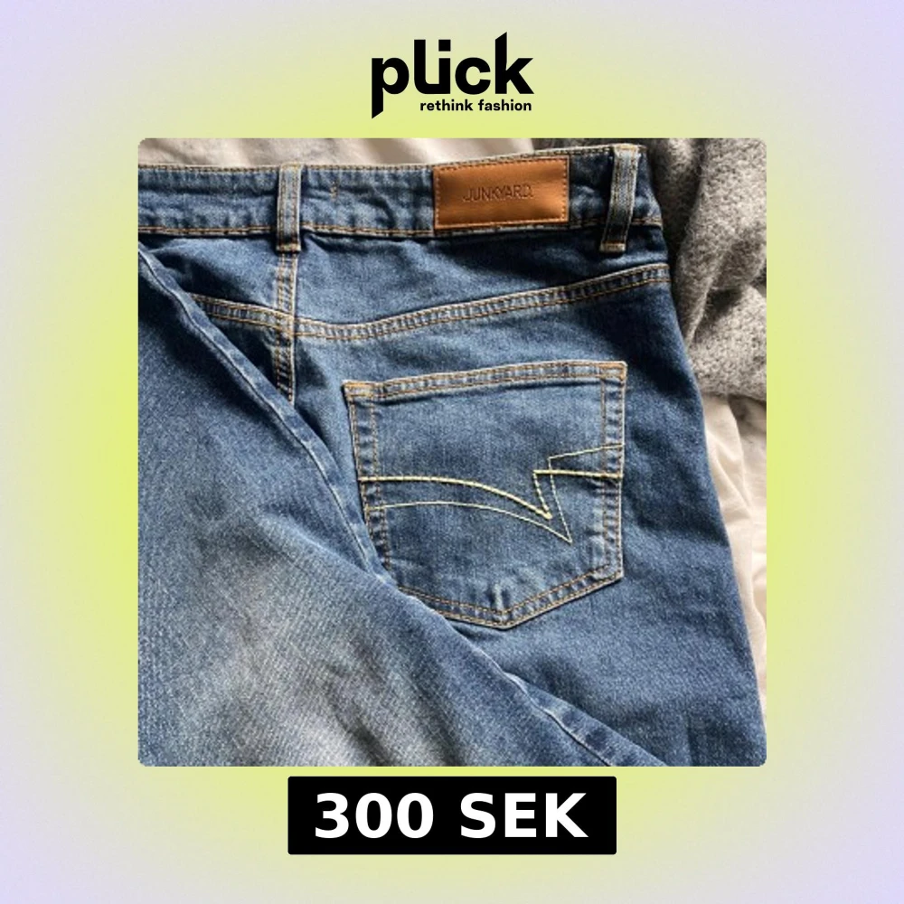 Säljer ett par klassiska blå jeans från Junkyard med snygga kontrastsömmar och bakficka med unik sömdesign. Jeansen har normal passform och är perfekta till vardagslooken. Har bara provat så dom är andvänat 1 gång