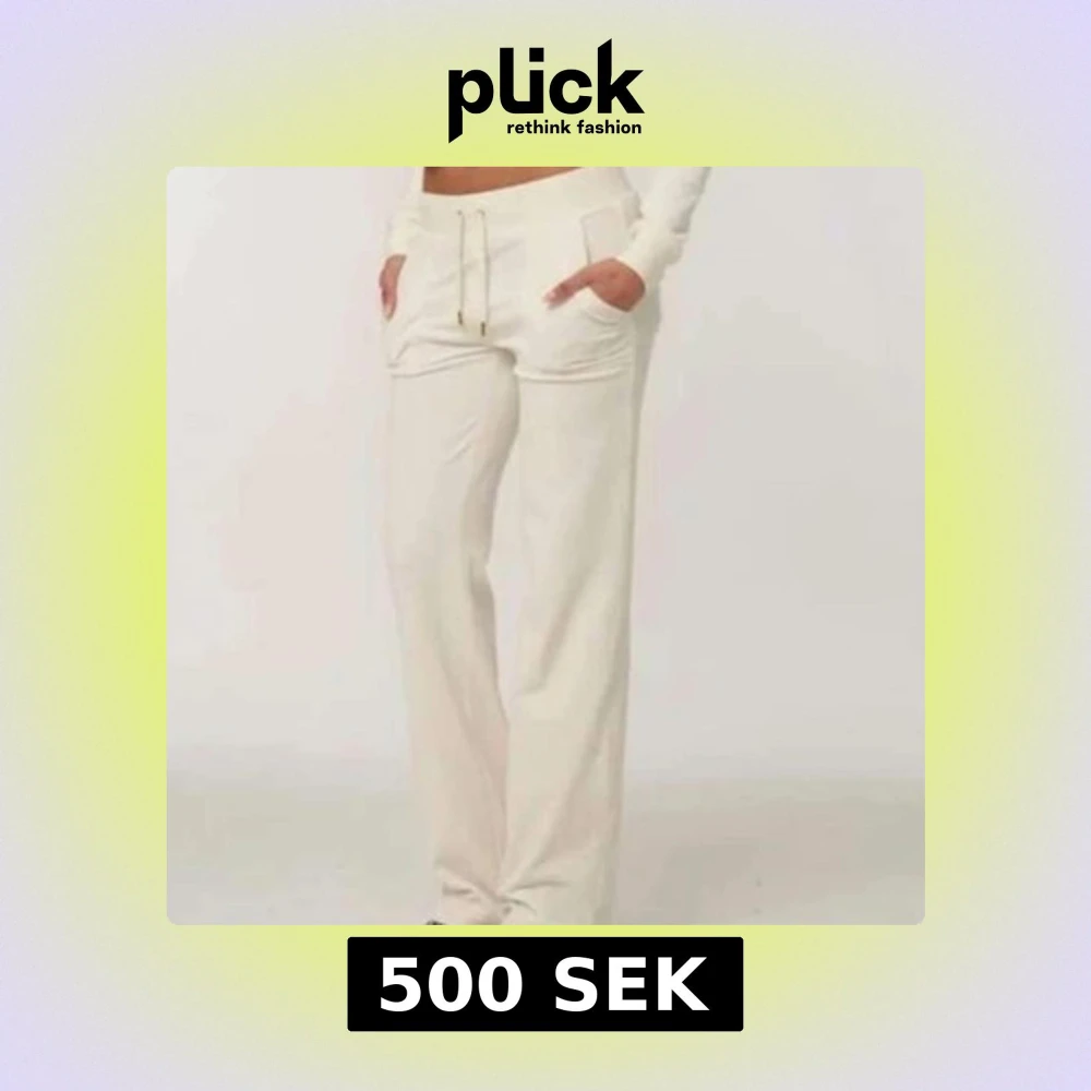 Snygga vita mjukisbyxor med hög midja och snörning i midjan. Byxorna har en loose passform och är perfekta för en avslappnad stil. De har praktiska fickor och en diskret logga på sidan.