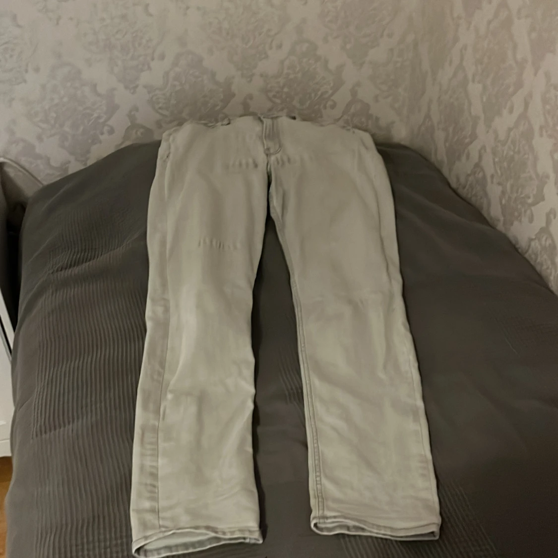 Snygga grå jeansbyxor med en klassisk design. De har en rak passform och är perfekta för en avslappnad stil. Byxorna har fickor både fram och bak, vilket ger en praktisk touch.