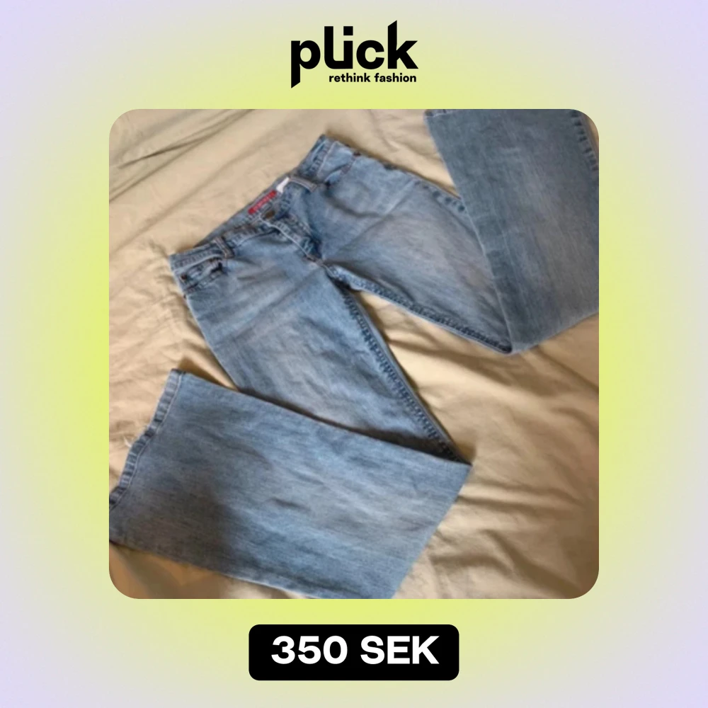 Väldigt fina jeans i bra skicka med lågmidja, är i storlek m men skulle säga att dom passar mer som en s. Lite slitage längst ner på byxbenet.