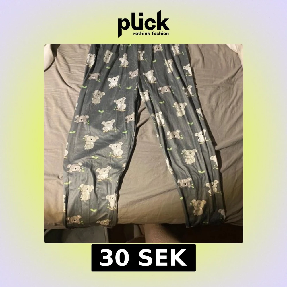 Supermysiga grå mjukisbyxor med gulligt koalamönster och små gröna blad. Perfekta för chill hemma eller som pyjamasbyxor. Byxorna har en avslappnad passform och är gjorda i mjukt material som känns skönt mot huden. Rekommenderas för barn mellan 10-13 år beronende på om man har långa ben eller ej