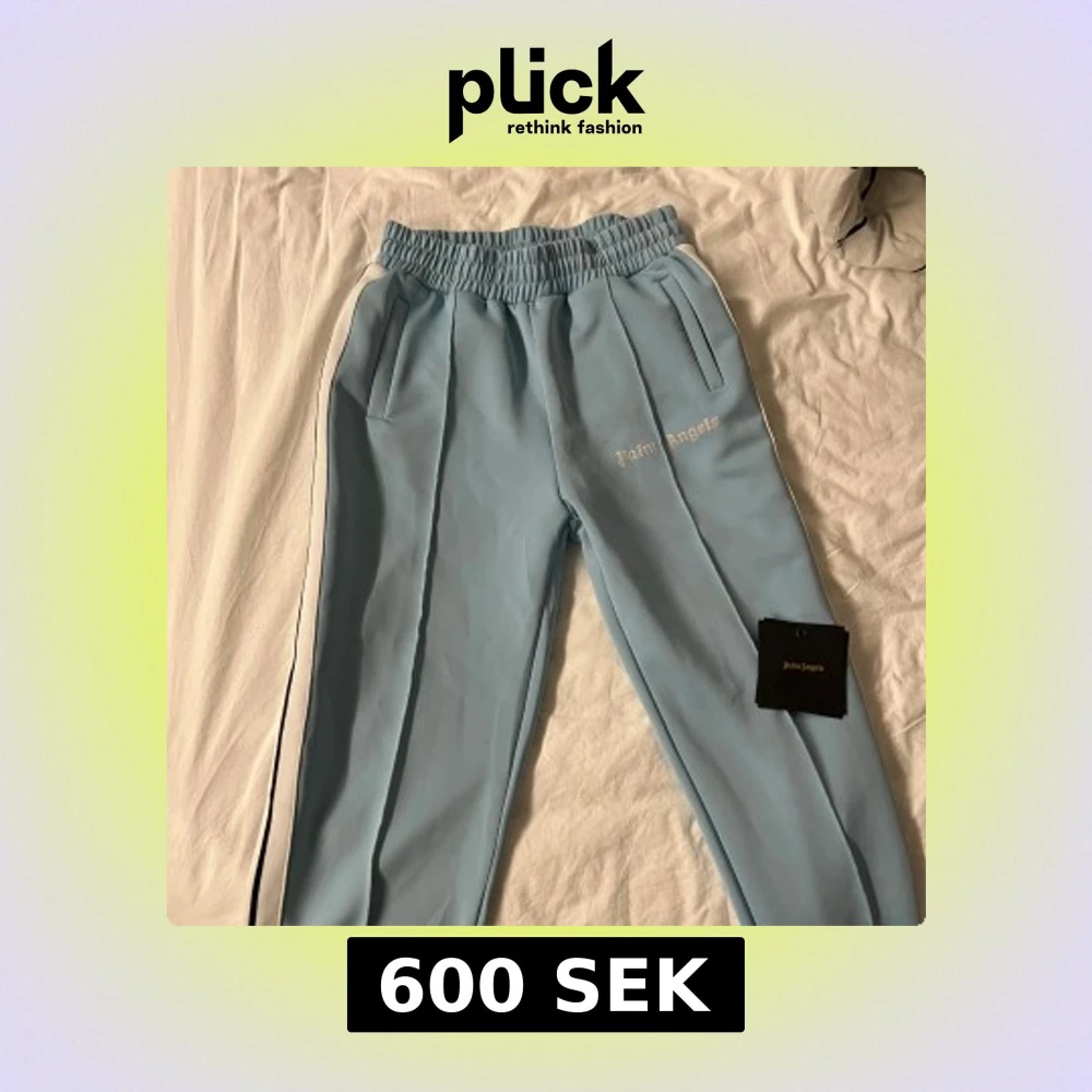Säljer ett par ljusblå Palm angels byxor i ny skick, lapp följer med. Pris kan diskuteras