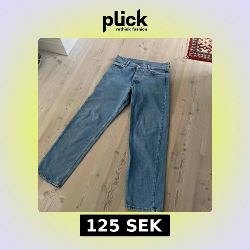 Säljer ett par klassiska ljusblå jeans från Sweet Sktsbs i rak modell. Jeansen har fem fickor, gylf med dragkedja och är tillverkade i 100% bomull. Perfekta för dig som gillar en tidlös stil.